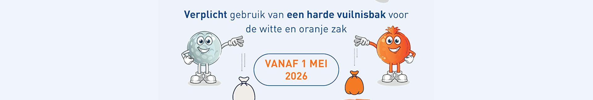 Om de problematiek van opengescheurde vuilniszakken op de openbare weg efficiënt te bestrijden treden er op 1 mei 2026 nieuwe regels in werking. Voortaan is het gebruik van een harde vuilnisbak verplicht voor de witte en oranje zak. De witte zak moet in een harde trechtervormige vuilnisbak van 80 liter geplaatst worden. Het is het enige model dat toegestaan wordt door het agentschap Net Brussel. Deze vuilnisbakken worden tegen € 15 (enkel cash) verkocht op de dienst Reinheid in de Stallestraat 160. De oranje zak moet in een specifieke oranje vuilnisbak geplaatst worden. Die wordt gratis ter beschikking gesteld door de dienst Reinheid.